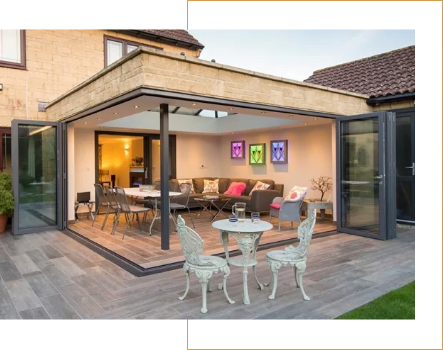 Beyond their visual appeal, our bi-fold doors provide numerous benefits for existing homeowners. The flexible design allows seamless integration into patios, gardens, or indoor rooms, maximising your living space and inviting abundant natural light inside.